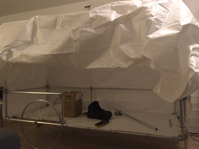 Construction started early 2020. With just some tubes roughly half the size my bed.
