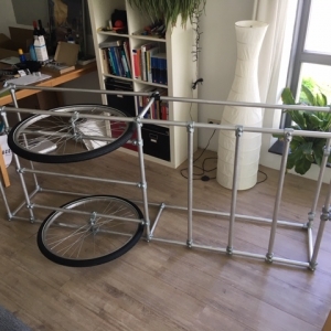 Build photos Bicycle Caravan - Tubes, connectors, wheels, plates and a trial tarp