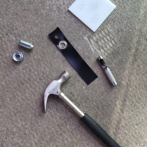 Testing the eyelets on the material first. No mistakes on my final tarp.